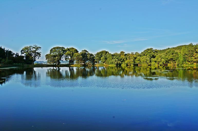 Keywords: reservoir autumn sky reflect memory blue sky landscape forest green summer water lake sea pond nail