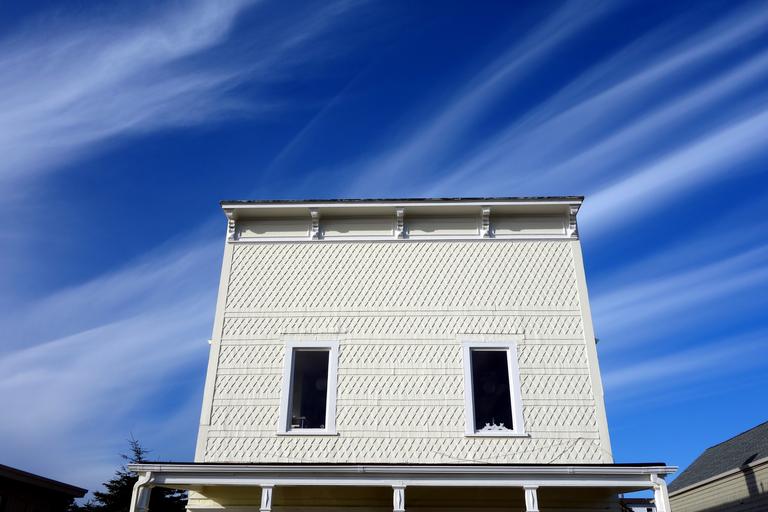 Keywords: residence city mendocino modern architecture california united states 270 km from san-francisco new england style house white windows decor decoration cloudy blue sky white clouds wallpaper