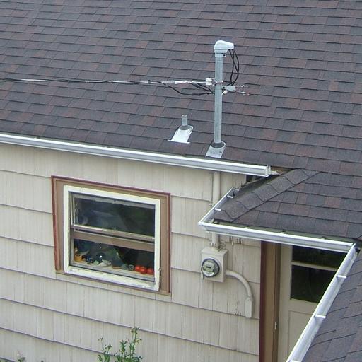Keywords: Residence service drop.JPG An electrical service drop where electric power is supplied from overhead power lines to a residence in Mount Vernon Washington USA This provides the 110V/240V split phase power standard in North America The triplex cable from the utility pole left consists of two lines each carrying 120 volts and an uninsulated ground cable The cable provides 120 V power for loads connected between one of the phase cables and ground and 240 V power to loads connected between the two phase cables The cable enters a conduit through a weatherhead and drops down to the electric meter then passes through the wall of the house to the service panel where it is connected to the home power wiring own 2011-07-17 Chetvorno I Chris Burks Chetvorno the creator of this work release it into the public domain for any use whatever Cc-zero Electrical distribution |
