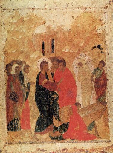 Keywords: Resurrection of Lazarus (Annunciation Cathedral in Moscow).jpg Воск ешение Лаза я Из п аздничного чина Школа или худ цент осква ачало XV в 1410-е гг 80 5 × 61 см Благовещенский cобо осковского К емля осква Россия Инв 3246 соб/Ж-1399 Из п аздничного я уса иконостаса собо а П иписывая икону кисти Анд ея Рублева В Г Б юсова отмечала в ублевском пе еосмыслении канонической композиции две особенности Во-пе вых Лаза ь показан не на фоне че ной пеще ы а в сконценти ованном освещении в свете славы Х иста Вто ая особенность - пе естановка двух г упп иудеев и соп овождающих Х иста апостолов см под обнее у Б юсова 1998 ст 26 28 http //www kreml ru/ru/museums/annunciation/icons/holiday/ 15 c 15 Icons of Resurrection of Lazarus Main iconostasis of Annunciation Cathedral in Moscow P07 Files uploaded by Shakko from various sources Icons formerly attributed to Andrej Rublëv PD-old-100 |