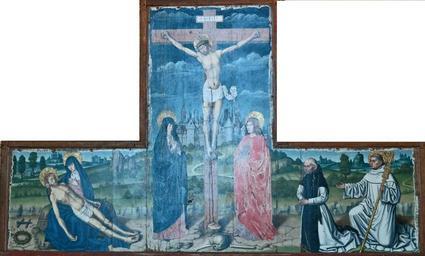 Keywords: Retable Beaussant - cathédrale d'Angers.jpg Artwork creator Maître du Retable Beaussant ca 1470-1490 painting wood cm 149 241 Cathédrale Saint-Maurice d'Angers object history Tableau de retable donné par le général Beaussant en 2004 Il était recouvert par une peinture de l'Assomption datée de 1699 Cette peinture a été dégagée lors d'une restauration pour laisser apparaître la peinture originelle exhibition history credit line http //www culturecommunication gouv fr/Regions/Drac-Pays-de-la-Loire/Mini-site/Monuments-historiques/Les-monuments-historiques-propriete-de-l-Etat/Cathedrale-d-Angers culturecommunication gouv fr PM49001919 accession number PD-Art-100 Interior of Angers Cathedral Ž Altar pieces in Maine-et-Loire Ž Paintings of Crucifixion of Christ in France Renaissance paintings of Crucifixion of Christ 15th-century paintings of the Crucifixion of Christ Ž Maître du Retable Beaussant |