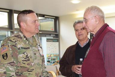 Keywords: u.s. army medical department activity bavaria usarmymedicaldepartmentactivitybavaria bmeddac meddac bavaria meddacbavaria germany u.s. army usarmy col. david richardson coldavidrichardson lt. col. shannon shaw ltcolshannonshaw meddac regional health command europe regionalhealthcommandeurope rhc-e rhce ansbach health clinic ansbachhealthclinic grafenwoehr health clinic grafenwoehrhealthclinic stuttgart health clinic stuttgarthealthclinic vilseck health clinic vilseckhealthclinic health usag bavaria usagbavaria col. lance varney collancevarney resiliency physical fitness physicalfitness mental health mentalhealth healing patient care patientcare patient satisfaction patientsatisfaction patient safety patientsafety soldier readiness soldierreadiness soldier fitness soldierfitness preventive medicine preventivemedicine army triad armytriad immunization flu flu shots flushots influenza retirees military spouses militaryspouses cold war coldwar europe. united states army garrison bavaria europeunitedstatesarmygarrisonbavaria brig. gen. tony aguto briggentonyaguto 7th army training command 7th atc 7tharmytrainingcommand7thatc command sergeant major jeffrey sweezer commandsergeantmajorjeffreysweezer retired military retiredmilitary retiree appreciation day retireeappreciationday people indoor GRAFENWOEHR, Germany – Military retirees were honored at the United States Army Garrison Bavaria's annual Retiree Appreciation Day held at the BMEDDAC Grafenwoehr Health Clinic on Tower Barracks 14 October. More than 200 retirees and annuitants took advantage of services to update medical records, receive flu vaccinations, make medical and dental appointments as well as take advantage of the many community services open to them offered on military posts across Germany. During the course of the event retirees were able to speak with Brig. Gen. Tony Aguto, Commanding General for the 7th Army Training (7th ATC) and 7th ATC Command Sergeant Major Jeffrey D. Sweezer. USAG Bavaria Commander Col. Lance Varney as well as BMEDDAC Commander Col. David Richardson (pictured, left) and Grafenwoehr Health Clinic Commander Lt. Col. Shannon Shaw. To learn more about the people and facilities of the U.S. Army Medical Department Activity Bavaria (BMEDDAC) and the clinics they support in Ansbach, Grafenwoehr, Hohenfels, Stuttgart and Vilseck visit the BMEDDAC website at rhce.amedd.army.mil/bavaria Photo by Michael Beaton, U.S. Army Medical Department Activity Bavaria Public Affairs (Released). GRAFENWOEHR, Germany – Military retirees were honored at the United States Army Garrison Bavaria's annual Retiree Appreciation Day held at the BMEDDAC Grafenwoehr Health Clinic on Tower Barracks 14 October. More than 200 retirees and annuitants took advantage of services to update medical records, receive flu vaccinations, make medical and dental appointments as well as take advantage of the many community services open to them offered on military posts across Germany. During the course of the event retirees were able to speak with Brig. Gen. Tony Aguto, Commanding General for the 7th Army Training (7th ATC) and 7th ATC Command Sergeant Major Jeffrey D. Sweezer. USAG Bavaria Commander Col. Lance Varney as well as BMEDDAC Commander Col. David Richardson (pictured, left) and Grafenwoehr Health Clinic Commander Lt. Col. Shannon Shaw. To learn more about the people and facilities of the U.S. Army Medical Department Activity Bavaria (BMEDDAC) and the clinics they support in Ansbach, Grafenwoehr, Hohenfels, Stuttgart and Vilseck visit the BMEDDAC website at rhce.amedd.army.mil/bavaria Photo by Michael Beaton, U.S. Army Medical Department Activity Bavaria Public Affairs (Released). |
