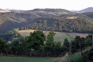 | Keywords: Retournac La Bourange3.JPG Retournac dĂ©p de la Haute-Loire France Auvergne La Bourange dans l ™est de la commune de Retournac Point de vue dirigĂ© vers le sud-sud-est depuis un lieu un peu Ă l ™ouest du hameau de la Para comm de Beauzac Derrière le prĂ© et les arbres Ă l ™avant-plan prairies et labours de la ferme de la Bourange comm de Retournac dont on entr ™aperçoit les bâtiments Ă©tables Ă toiture rouge et logis plus Ă gauche entre les frondaisons; l ™Ă©difice plus ou moins cubique Ă toiture peu Ă©levĂ©e Ă l ™extrĂŞme gauche de ce petit groupe de bâtiments est la maison forte ou maison de guet de la Bourange Les pentes boisĂ©es derrière les champs se terminent par un plateau oĂą se situent les Chaumettes comprenant quelques maisons agricoles avec leurs prĂ©s et leurs cultures ainsi que quelques ruines La Bourange et le plateau sont enserrĂ©s par un mĂ©andre de la Loire qui coule de droite Ă gauche non visible sur la photo plusieurs dizaines de mètres en contrebas des arbres Ă l ™avant-plan Le plateau est dĂ©limitĂ© Ă gauche c ™est-Ă -dire Ă l ™est par une ravine oĂą Ă la saison humide coule le Riougrand qui fait la frontière entre les communes de Retournac et de Beaux Les hauteurs et hameaux de Beaux sont Ă gauche de cette ravine Au loin contre le bord droit de la photo pentes et sommet aplati du suc d ™Ayme Sur la ligne d ™horizon Ă gauche on distingue nettement le dĂ´me du suc des Ollières alt 1186m situĂ© Ă quelques km au sud-est d ™Yssingeaux own Photo personnelle Torsade de Pointes AoĂ»t 2009 Retournac |