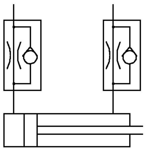 Keywords: Retract resistor check valve application.png Retract resistor check valve application pneumatic cylinder piston driven by Compressed air through 2 Retract resistor check valves Author User Rainer Bielefeld Drawn with CAD-System SEE4000 2006-04-12 own assumed Rainer Bielefeld CAD drawings Pneumatic symbols Pneumatic cylinders