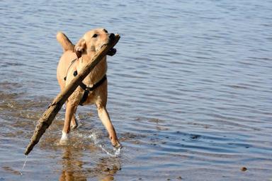 Keywords: retrieve dog brown young dog quadruped play great bring here floor hybrid pet