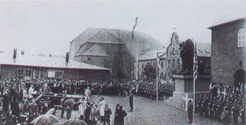 Keywords: Return of the Isted Lion (1945).gif en An image of the official U S handover of the Isted Lion to Denmark Løven er lavet af H W Bissen og er et monument for den danske sejr ved slaget ved Isted den 25 juli 1850 Den stod oprindeligt i Flensborg fra 1862 men blev senere taget af tyskerne til Berlin i 1864 Efter Anden Verdenskrig overdrog den amerikanske general Barker Istedløven til det danske folk symboliseret i kong Christian X Begivenheden hvor løven opstilles i Tøjhusmuseets gård i 1945 ses på fotografiet http //www danskskaanskforening dk/DST/1-02-isted htm 1945 PD-Denmark50 PD-1996 Denmark Flensburg Lion Copenhagen 1945-2011 Ray Barker Tøjhusmuseet |