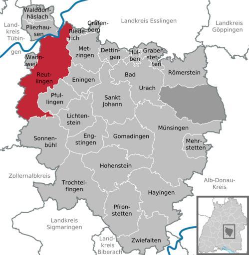 Keywords: Reutlingen in RT.svg DeLocMaps Reutlingen Landkreis Reutlingen District of Reutlingen Reutlingen district L'arrondissement de Reutlingen Arrondissement de Reutlingen Baden-Württemberg Bade-Wurtemberg Baden-Württemberg Adobe Illustrator <br/> own based on <br/> File Municipalities in Baden-Württemberg svg by TUBS<br/> File Baden-Württemberg HD district svg by TUBS 2010-04-29 Hagar66 based on work of TUBS Hagar66/licensesection Attribution TUBS/Credits Locator maps of municipalities in Landkreis Reutlingen Reutlingen |