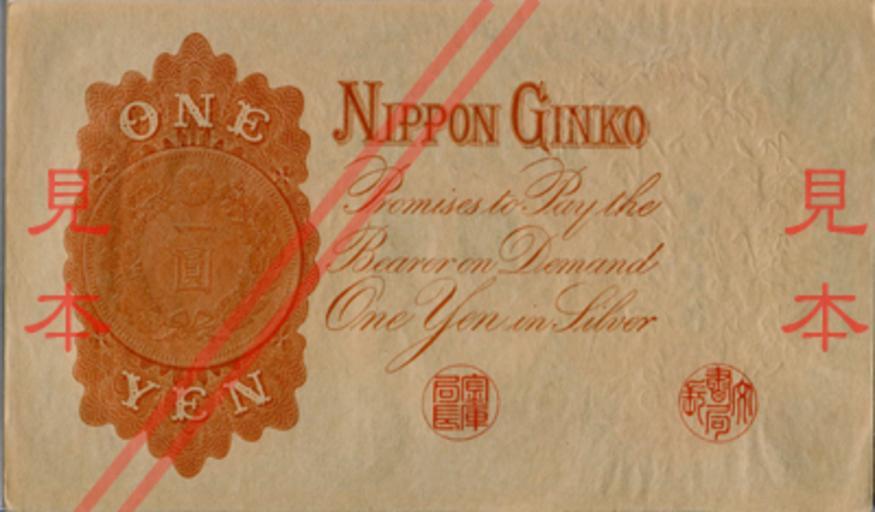 Keywords: Revised 1 Yen Bank of Japan Silver convertible - back.jpg en Revised 1 Yen Bank of Japan silver convertible note First Issed in 1889 Now defined as nonredeemable legal tender note by law 145mm x 85mm 2011-07-02 own Eclipse2009 PD-Japan-exempt banknotes PD-Japan 1 Yen banknotes of Japan |