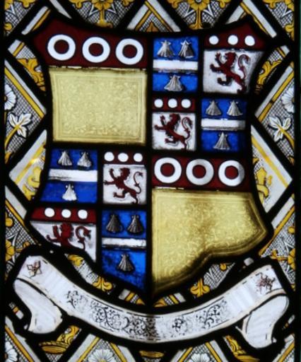 | Keywords: RevThomasHooperMorrisonArms YeoValeChapel AlwingtonChurch Devon.PNG en Arms of Rev Thomas Hooper Morrison 1768-1824 of Yeo Vale in the parish of Alwington Devon son and heir of Rev Hooper Morrison of Yeo Vale by his wife Charlotte Orchard 1735-1791 sister and in her issue heiress of Paul II Orchard 1739-1812 of Hartland Abbey Devon Arms Quarterly of 4 1 4 Or on a chief gules three chaplets of the first Morrison here shown with chaplets argent not or ; 2 3 quarterly of 4 1 4 Azure a fess between three escallops argent erroneous arms of Orchard which should be Azure a chevron argent between three pears pendant or as visible in Hartland Churchhttps //www flickr com/photos/trelewis/3461042400/in/set-72157617013271579 and quartered by the Stucley Baronets of Hartland Abbey ; 2 3 Argent a lion rampant gules on a chief of the last three plates unknown own photo Lobsterthermidor <span class signature-talk ></span> 15 24 28 March 2015 UTC Stained glass 1861; photo 2015 St Andrew's Church Alwington interior Morrison arms Stained glass windows in Devon Coats of arms on stained glass windows in England |