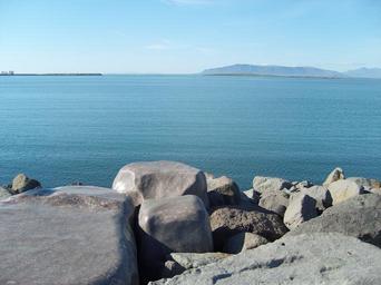 Keywords: reykjavik iceland sea lake stones rock horizon bank fixing view water rocky