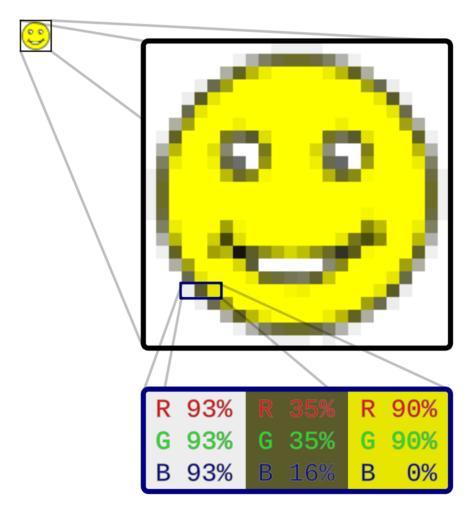 Keywords: Rgb-raster-image.svg en 24x24 pixel image of a smiley face based on File Smiley_2 svg magnified 10x to demonstrate pixel boundaries 2011-10-26 own Gringer cc-zero Uploaded with UploadWizard RGB Rasterization Raster graphics