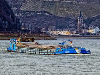 Keywords: rhine river germany ship barge boat mountains village scenic business industry shore shoreline hdr nature outside countryside