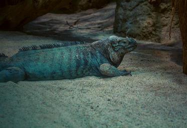 Keywords: rhinoceros iguana iguana animal wildlife photography reptile scaly zoo creature scale blue background color exotic cyclura cornuta
