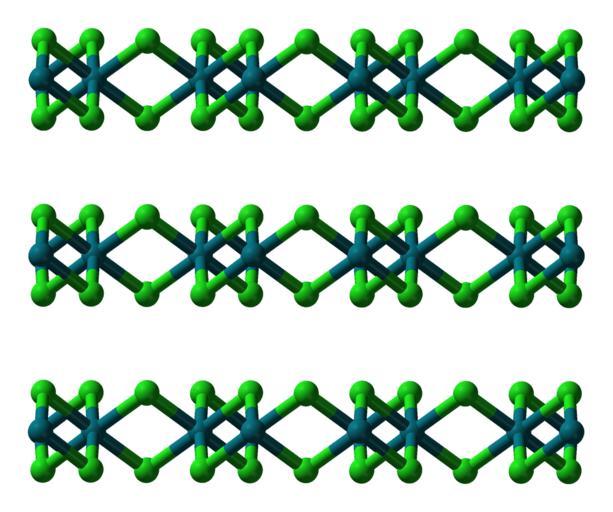 Keywords: Rhodium-trichloride-layers-xtal-1964-3D-balls.png Ball-and-stick model of part of the crystal structure of rhodium III chloride RhCl<sub>3</sub> X-ray diffraction data from http //dx doi org/10 1016/0022-5088 64 90103-1 J Less Common Met 1964 6 226-231 Model constructed in http //www crystalmaker com/ CrystalMaker 8 1 Image generated in http //accelrys com/products/discovery-studio/visualization/discovery-studio-visualizer html Accelrys DS Visualizer own 2009-05-03 Ben Mills Benjah-bmm27 Images by Ben Mills Rhodium III chloride Crystal structures of chlorides |