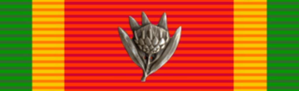 Keywords: Ribbon - Africa Service Medal & King's Commendation.png Size 320x98px scale 10px 1 mm Africa Service Medal with the protea emblem to denote the award of the King's Commendation South Africa own Col André Kritzinger 2015-06-14 x29px with transparent background x29px without the King's Commendation South Africa emblem CC0 Col André Kritzinger Ribbon bars of South Africa 402 19454 Ribbon bars of South Africa pre-1952 402 19454 Kritzinger's decorations medals 402 19454 Africa Service Medal |