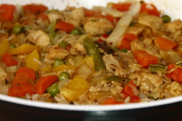 Keywords: rice fry up carrots rice ladle food eat lunch delicious meal substantial edible pan court nutrition