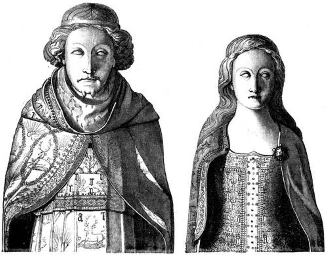 | Keywords: Richard Anna WEst.jpg en Richard II and his first queen Anne of Bohemia from the gilt-latten effigies on their tomb in Westminster Abbey made by Nicholas Broker and Godfrey Prest coppersmiths of London in 1395 http //www gutenberg org/files/28157/28157-h/images/img145 jpg HISTORY OF ENGLAND by SAMUEL R GARDINER 1915 HISTORY OF ENGLAND by SAMUEL R GARDINER 1916 Tombs in Westminster Abbey Richard II of England Anne of Bohemia PD-Art | ||||