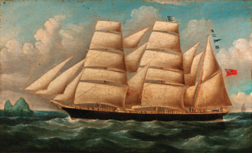 | Keywords: Richard B. Spencer - The Clipper Harriet McGregor.jpg oil canvas cm 46 4 76 2 object history credit line signed 'R B Spencer' lower left and inscribed and dated 'Harriet McGregor A S Leslie Commander 1878' centre One of the most famous of the so-called colonial clippers the Harriet McGregor was designed and built by John McGregor at Hobart Tasmania in 1871 Rigged as a barque and registered at a mere 331 tons she measured 134 feet in length with a 27½ foot beam and was owned jointly by her builder and his brother Originally intended for the inter-Colonial trade her owners decided to put her onto the London run before she was even launched and she proved an instant success Stoutly constructed from blue gum laid on iron frames London's shipowners declared her a splendid piece of marine architecture when she arrived in the Thames after her maiden voyage and her master Captain Richard Copping wrote to tell her owners in glowing terms how well she had handled on her first passage <br/> Apart from her acknowledged speed which particularly after her round-the-world dash with another Tasmanian barque the Berean brought her considerable acclaim she was also noteworthy for the remarkable regularity of her passage times over almost two decades Year after year she followed an annual pattern of sailings beginning each Christmas Day when she left Hobart bound for London loaded with wool and sperm oil Returning to Hobart with general cargo she would then run across to Mauritius with coal pick up her regular cargo of sugar and be back in Hobart in good time to get away again on the Christmas tide to London In the fifteen years 1871-85 that she folowed this routine Harriet McGregor sailed a total of 535 529 miles to schedules which were not only the envy of many steamship lines but were also uncannily consistent for any wind-driven ship Sold to Danish owners in 1896 they began running her to South America but her new career was cut short when she caught fire and burnt in Rio de Janeiro harbour soon afterwards <ref>http //www christies com/lotfinder/LotDetailsPrintable aspx intObjectID 1777034 Christie's</ref> reflist accession number 2000 05 11 PD-old-auto-1923 1890 Richard Barnett Spencer 19th-century sailing ships in paintings Harriet McGregor ship 1870 |