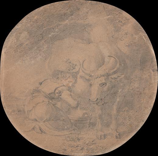 | Keywords: Richard Cosway - Mrs. Cosway as the Milkmaid - Google Art Project.jpg no inscription Inscription _Signed_and_Dated not signed Not on View Graphite and red chalk on moderately thick slightly textured brown wove paper cows women milk Cosway Maria Louisa Catherine Cecilia Baroness Cosway in the nobility of the Austrian empire 1760 “1838 history painter and educationist trees flowers plants hats aprons main garments pails buckets genre subject historical subject portrait special url_id KQGMUmlAC8zUOA PD-old-100-1923 1821 Richard Cosway Google Art Project works by Richard Cosway Maria Cosway Milking milkmaids in art |