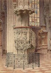 | Keywords: Richard Moser Stephansdom Pilgramkanzel 1916.jpg Artwork Creator Richard Moser Die Pilgramkanzel in St Stephan 1916 by 1936 Pastel paper Richard Moser 1916 signature/date lower left cm 65 52 http //www dorotheum com PD-Art Images from Dorotheum Richard Moser Pulpit in St Stephen's Cathedral Vienna St Stephen's Cathedral in art Paintings of church interiors 1916 paintings Watercolor paintings of building interiors Paintings of buildings in Vienna | ||||