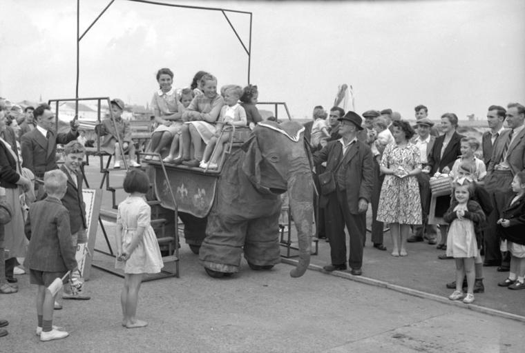 | Keywords: summer seaside holiday beach bay sand sea leisure family fun entertainment ride enjoyment north east northeast blackandwhite monochrome black and white This is a photograph of children riding on a mechanical elephant, South Shields, August 1950 (DT.TUR/2/5197H) This photograph is part of a set that has been created to celebrate the opening of South Tyneside Council’s new leisure centre, Haven Point, on 28 October. It focuses in particular on life along the foreshore at South Shields during the 1950s but also includes a few images from further down the coast. South Shields has long been a popular seaside resort and also has a proud industrial heritage. Times have changed, though, and many of the old industries such as shipbuilding and coal mining have disappeared. Rather than stand still and accept this change in fortunes, South Tyneside Council is pressing ahead with an ambitious vision to transform the Foreshore, Town Centre and Riverside areas into vibrant destinations. Haven Point is a key part of this change. Tyne & Wear Archives and South Tyneside Local Studies Library have a vital role to play in this. As South Shields is regenerated and forever changed the Archives and Local Studies serve as its memory. We keep alive a window into the town’s past, preserving the history of people, places and industries that no longer exist. South Shields must look forward but its sense of direction will be lost if it forgets where it came from. These images, together with a fantastic selection from South Tyneside Local Studies Library, can be seen in a digital exhibition at Haven Point. You can also see images from the Local Studies Library online at www.southtynesideimages.org.uk/. A Blog on this collection of images can be read here (Copyright) We're happy for you to share these digital images within the spirit of The Commons. Please cite 'Tyne & Wear Archives & Museums' when reusing. Certain restrictions on high quality reproductions and commercial use of the original physical version apply though; if you're unsure please email archives@twmuseums.org.uk This is a photograph of children riding on a mechanical elephant, South Shields, August 1950 (DT.TUR/2/5197H) This photograph is part of a set that has been created to celebrate the opening of South Tyneside Council’s new leisure centre, Haven Point, on 28 October. It focuses in particular on life along the foreshore at South Shields during the 1950s but also includes a few images from further down the coast. South Shields has long been a popular seaside resort and also has a proud industrial heritage. Times have changed, though, and many of the old industries such as shipbuilding and coal mining have disappeared. Rather than stand still and accept this change in fortunes, South Tyneside Council is pressing ahead with an ambitious vision to transform the Foreshore, Town Centre and Riverside areas into vibrant destinations. Haven Point is a key part of this change. Tyne & Wear Archives and South Tyneside Local Studies Library have a vital role to play in this. As South Shields is regenerated and forever changed the Archives and Local Studies serve as its memory. We keep alive a window into the town’s past, preserving the history of people, places and industries that no longer exist. South Shields must look forward but its sense of direction will be lost if it forgets where it came from. These images, together with a fantastic selection from South Tyneside Local Studies Library, can be seen in a digital exhibition at Haven Point. You can also see images from the Local Studies Library online at www.southtynesideimages.org.uk/. A Blog on this collection of images can be read here (Copyright) We're happy for you to share these digital images within the spirit of The Commons. Please cite 'Tyne & Wear Archives & Museums' when reusing. Certain restrictions on high quality reproductions and commercial use of the original physical version apply though; if you're unsure please email archives@twmuseums.org.uk |