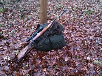 Keywords: rifle hunting hunter backpack forest leaves tree shoot gun