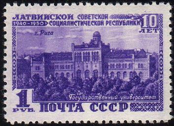 Keywords: Riga 1950 1rub USSR.jpg Почтовая ма ка СССР из се ии «10-летие Латвийской Советской Социалистической Республики» выпущенная в 1950 году а ма ке изоб ажен Латвийский госуда ственный униве ситет Художник В Анд еев оме 1547 ЦФА Ти аж 500 тыс экз Описание по изданию «Каталог почтовых ма ок СССР 1918 1974» ЦФА 1976 en Postage stamp issued by the Soviet Union 1950 depicting view of Riga Latvia Scan of postage stamp from own collection Philaweb 2009-11-14 PD-RU-exempt stamps Stamps of the Soviet Union 1950 Riga on stamps University of Latvia Universities and colleges on stamps Anniversaries on stamps Latvian Soviet Socialist Republic