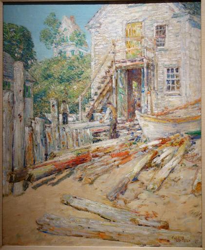 | Keywords: Rigger's Shop, Provincetown, Mass., by Frederick Childe Hassam, 1900, oil on canvas - New Britain Museum of American Art - DSC09516.JPG en Exhibit in the New Britain Museum of American Art New Britain Connecticut USA This artwork is in the public domain because the artist died more than 70 years ago The museum permitted photographs of this exhibit without restriction 2013-06-27 12 48 01 own Daderot PD-old-70-1923 cc-zero Paintings in the New Britain Museum of American Art Uploaded with UploadWizard Paintings by Childe Hassam |