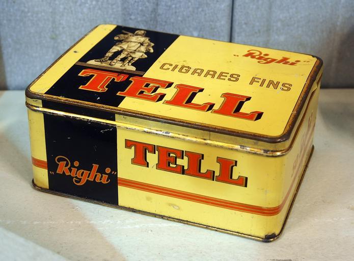 Keywords: Righi Tell cigares fins, pic2.JPG Old product not sold anymore own 2013-11-02 14 06 50 Alf van Beem CC-Zero Trademarked Cigarette tins Tell cigars Nostalgia by Alf van Beem