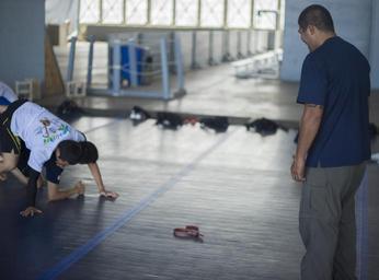 | Keywords: RIMPAC 2014 VBSS training 140702-N-PX130-024.jpg en Japan Maritime Self-Defense Force sailors from JS Kirishima DDG 174 and JS Ise DDH 182 practice physical training and defense tactics while an instructor from the Center for Security Forces Detachment Pearl Harbor watches during Rim of the Pacific RIMPAC Exercise 2014 The world's largest international maritime exercise RIMPAC provides a unique training opportunity that helps participants foster and sustain the cooperative relationships that are critical to ensuring the safety of sea lanes and security on the world's oceans Twenty-two nations more than 49 ships six submarines more than 200 aircraft and 25 000 personnel are participating in RIMPAC U S Navy photo by Mass Communication Specialist 1st Class Daniel Gay/Released 2014-07-02 Petty Officer 1st Class Daniel Gay https //www dvidshub net/image/1434317 140702-N-PX130-024 2014-07-03 23 44 JOINT BASE PEARL HARBOR-HICKAM HI US PD-USGov-Military-Navy People at Joint Base Pearl Harbor-Hickam JS Ise DDH-182 RIMPAC 2014 Images from DoD uploaded by Fæ |