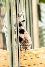 Keywords: ring tailed lemur eye lemur catta face madagascar zoo striped animal lemur black and white species of primate nature cute seat tail cheeky monkey sit catta mammal road tribe out stripes wild wildlife intelligent reflection review back hide