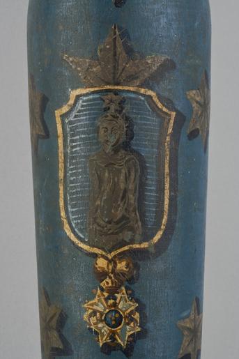 Keywords: Ringlans Adolf F Munck - Livrustkammaren - 87455.tif Lans av trä bestående av kolv handtag stödskiva vingar holk spjut och spets <br/><br/>Bakåt avsmalnande cylindrisk kolv med rundade ändar Kolven målad med blå grundfärg med silverkanter Dekor i form av adliga ätten Muncks af Fulkila vapensköld i randat blått med en uppstigande munk i halvfigur i guld skuggad med svart med en sexuddig stjärna ovanpå huvudet Skölden krönt av en halv stjärna Under skölden hänger en orden av okänt slag <br/><br/>Handtag klätt med blått mönstrat siden En frans av tvinnad guldtråd i ena änden av handtaget närmast kolven <br/><br/>Vidhängande papperslapp med text Gripsholm 1927 <br/><br/>Stödskiva av trä i form av sexuddig stjärna med rundade spetsar målad i blått med guld-/silverkant <br/><br/>I skivan och stången intappat sex tunna bräder utsågade och målade i blått med silverfärg Vingarna konturerade i fyra runda bågar avsmalnande uppåt och nedåt den största bågen genombruten av fem runda hål <br/><br/>Svarvad balusterformig holk målad i blått och silver <br/><br/>Blåmålat framåt avsmalnande spjut <br/><br/>Spets av silver-/guldmålad metall med 159 mm lång konisk holk och konisk spets 24 mm lång original caption Ringlans Adolf F Munck<br/> Nyckelord Munck Ringlans Blått Stjärnor Föremålsbild end other date century 18 wood Färg blå silver material trä - silk Färg blå material siden - gold thread - metal size mm 2380 size mm 290 kolv size mm 180 handtag size mm 690 vinge size mm 885 spjut size mm 183 spets LRK Adolf Fredrik Munck greve hovstallmästare Trofast - hov och tass i kunglig tjänst 2010-2011 Livrustkammaren Trogna vänner - Kungliga hästar och hundar 2011-2012 Museiverket/Finlands nationalmuseum place of origin original filename lm_dig6458_23574 60162 inventory number LRK 23574 87455 CC-BY-SA Matti Östling Matti Östling Media contributed by LSH dim-with multiple size templates Media contributed by LSH unmatched objKeyword Media contributed by LSH unmatched keyword Media contributed by LSH without any categories Color images from Livrustkammaren Media contributed by LSH 2013-10 |