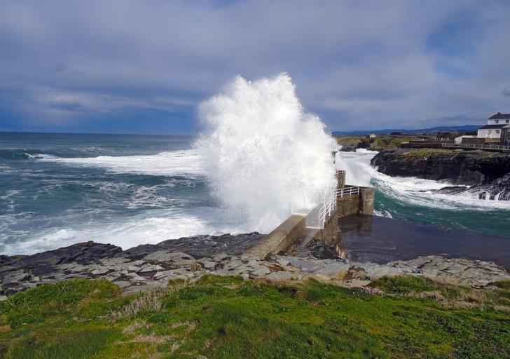 Keywords: rinlo ribadeo lugo spain sea wave cliffs storm rocks breakwater