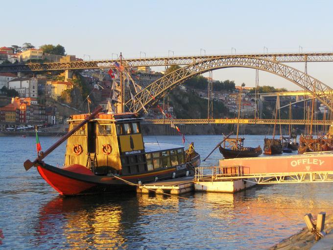 Keywords: Rio Douro.jpg O Rio Douro visto de Vila Nova de Gaia distrito do Porto Portugal Own Setembro de 2007 Tiago Vasconcelos Modernized rabelos Dom Luis I bridge from Cais de Gaia Dom Luis I Bridge in 2007