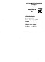 | Keywords: Rioja pp generales 2016.jpg es Papeleta electoral de Partido Popular PP para el Congreso - Elecciones Generales de España de 2016 circunscripción de La Rioja 2016-08-05 own B25es other versions cc-zero PD-SpanishGov <br/> De minimis The party logo Ballot papers for the 2016 general election for La Rioja Spain Ballot papers for Partido Popular Uploaded via Campaign bpsge |