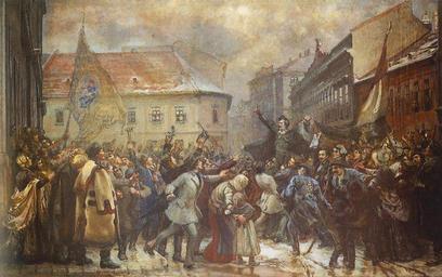 | Keywords: Rise up, Hungarian!.jpg Artwork Creator János Thorma between 1898 1937 Oil on canvas Size cm 600 400 Institution Thorma János Museum Kiskunhalas object history credit line bottom left THORMA accession number 55 189 3 Fine Arts in Hungary http //www hung-art hu/kep/t/thorma/muvek/thorma05 jpg http //www hung-art hu/frames-e html /english/t/thorma/muvek/thorma05 html PD-old-70 <gallery> File Talpra magyar Thorma jpg </gallery> Paintings by János Thorma in the Thorma János Museum Kiskunhalas 1937 paintings in Hungary Nemzeti dal Revolution and war of independence 1848-49 in art Sándor Petőfi in art |