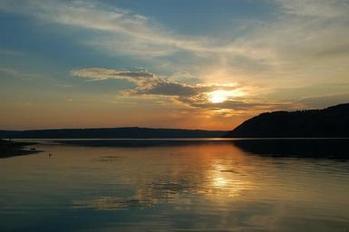 Keywords: river at sunset evening shore landscape nature tourism journey summer vacation sky