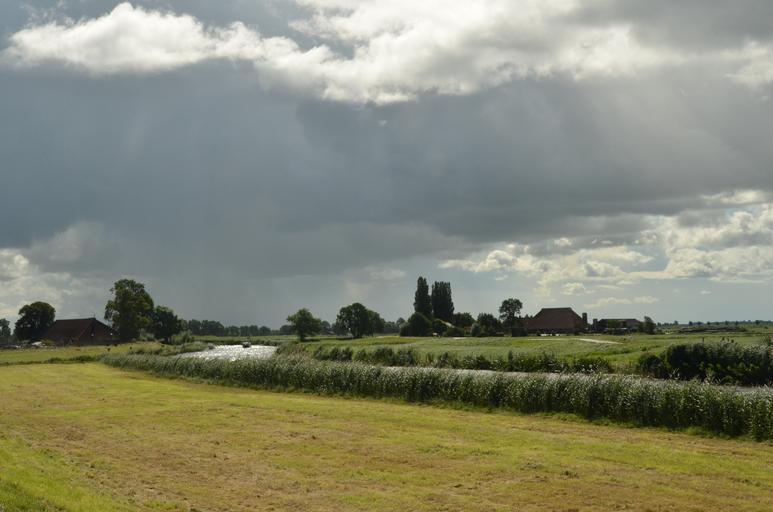 Keywords: river pasture farm air clouds dark threat storm landscape netherlands