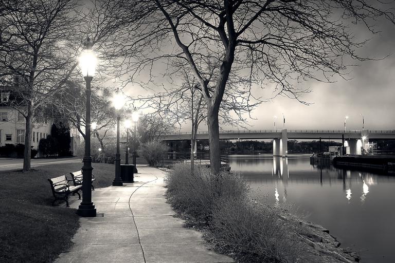 Keywords: river walk path downtown de pere wisconsin bridge water