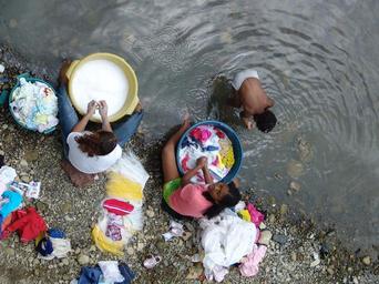 Keywords: river washerwomen work poverty hand washing hard work reality