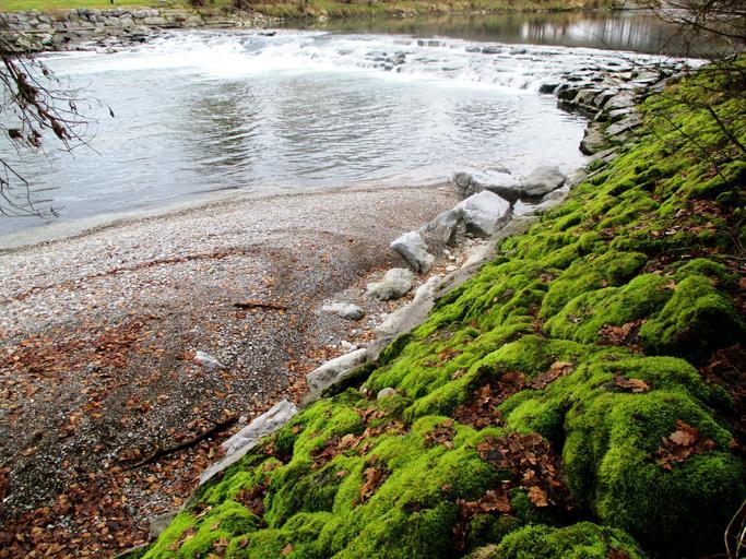 Keywords: river waterfall bank stones moss bemoost pebble leaves february thur bürglen thurgau switzerland