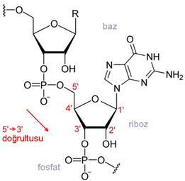 | Keywords: RNA chemical structure tr.PNG en Diagram to illustrate 5' to 3' directionality in a nucleic acid shown here in an RNA structure text in Turkish Modified from Image RNA chemical structure GIF tr Bir nükleik asitte burda bir RNA molekülü içinde 5' to 3' doğrultusunun gösterimi Image RNA chemical structure GIF resminden Türkçeleştirilmiştir own 2008-01-31 InfoCan Public domain Image RNA chemical structure GIF RNA | ||||