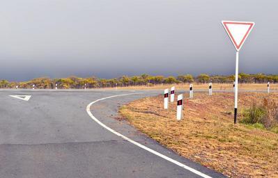 Keywords: road asphalt turn sign autumn nature overcast fog