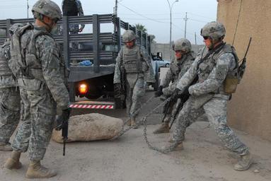 | Keywords: Road blocks made for progress-Soldiers secure Baghdad's Abu T?shir Market Street DVIDS122995.jpg en Platoon sergeant Staff Sgt Jason Hellums who hails from Fort Hood Texas and Section leader Staff Sgt Jessie Rickey a native of Walnut Ridge Ark assigned to 2nd Platoon Troop C 7th Squadron 10th Cavalry Regiment 1st Brigade Combat Team 4th Infantry Division Multi-National Division - Baghdad move concrete and debris Oct 13 2008 to create improvised barriers for road blocks closing side entrances into the Abu T'shir Market Street Working with national police of the 3rd Battalion 3rd Aburisha Bde attached to the 7th Bde 2nd NP Div the U S Soldiers constructed hasty barriers to control access into the Market Street secure the muhallahs and protect the Iraqi citizens from enemy attack The Soldiers worked alongside the Iraqi Security Forces to provide security for the approximately 75 000 citizens of the Rashid District's Abu T'shir community after extremists detonated a car bomb Oct 10 2008 killing innocent Iraqis in the marketplace 2008-10-13 Sgt 1st Class Brent Williams https //www dvidshub net/image/122995 122995 2008-10-18 12 08 BAGHDAD IQ PD-USGov Fort Hood Texas Images from DoD uploaded by Fæ Road blocks made for progress-Soldiers secure Baghdad's Abu T?shir Market Street DVIDS122995.jpg en Platoon sergeant Staff Sgt Jason Hellums who hails from Fort Hood Texas and Section leader Staff Sgt Jessie Rickey a native of Walnut Ridge Ark assigned to 2nd Platoon Troop C 7th Squadron 10th Cavalry Regiment 1st Brigade Combat Team 4th Infantry Division Multi-National Division - Baghdad move concrete and debris Oct 13 2008 to create improvised barriers for road blocks closing side entrances into the Abu T'shir Market Street Working with national police of the 3rd Battalion 3rd Aburisha Bde attached to the 7th Bde 2nd NP Div the U S Soldiers constructed hasty barriers to control access into the Market Street secure the muhallahs and protect the Iraqi citizens from enemy attack The Soldiers worked alongside the Iraqi Security Forces to provide security for the approximately 75 000 citizens of the Rashid District's Abu T'shir community after extremists detonated a car bomb Oct 10 2008 killing innocent Iraqis in the marketplace 2008-10-13 Sgt 1st Class Brent Williams https //www dvidshub net/image/122995 122995 2008-10-18 12 08 BAGHDAD IQ PD-USGov Fort Hood Texas Images from DoD uploaded by Fæ |