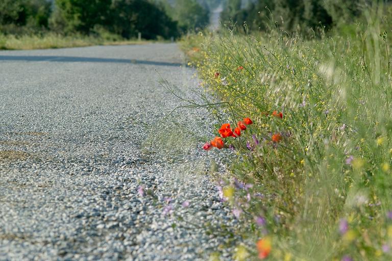 Keywords: road flowers herbs poppies way asphalt spring red flowers summer blossom day bright