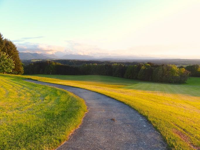 Keywords: road mountains sky view nature landscape green horizon country hill tourism