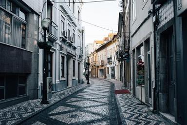 Keywords: road street pedestrian area paved mosaic beautiful urban town old historic picturesque facades alley lane buildings nobody emtpy texture pattern restored