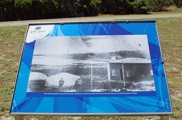 | Keywords: Robben Island Tour 39.jpg en Robben Island Museum display African chiefs who opposed the Dutch and British expansion in South Africa were imprisoned on Robben Island; they served out their sentences in huts made with tarpaulins and saplings Photograph taken en-route from prison buildings to the harbour at the end of the Robben Island tour 2013-11-28 13 52 46 own HelenOnline cc-by-sa-3 0 PD-South-Africa-exempt Uploaded with UploadWizard Robben Island User HelenOnline WC Political prisoners from South Africa |