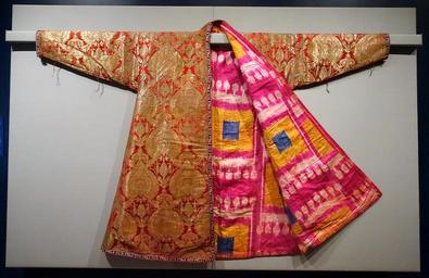 Keywords: Robe, Uzbekistan, Bukhara, late 1800s AD, silk, metal-wrapped silk, view 1 - Textile Museum, George Washington University - DSC09904.JPG en Exhibit in the Textile Museum George Washington University Washington DC USA Photography was permitted in the museum without restriction This work is old enough so that it is in the public domain 2015-03-26 16 07 44 own Daderot other versions PD-old-70 cc-zero Collections of the Textile Museum George Washington University Traditional clothes of Uzbekistan