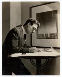 Keywords: smithsonian institution smithsonianinstitution robert edmond jones robertedmondjones suit drawing engineer triangle designer artist theater design theaterdesign design black&whitr blackwhitr black and white blackandwhite robert edmund jones robertedmundjones table portrait archives of american art archivesofamericanart indoor black and white Description: Jones, in suit, drawing at a waist high table. Identification on verso (handwritten): Robert Edmond Jones. Robert Edmond Jones, 1887-1954 Creator/Photographer: Unidentified photographer Medium: Black and white photographic print Dimensions: 25 cm x 19 cm Date: c. 1920 Persistent URL: www.aaa.si.edu/collections/images/detail/robert-edmond-jo... Repository: Archives of American Art Collection: Forbes Watson Papers, 1900-1950 Accession number: aaa_watsforb_3593 Description: Jones, in suit, drawing at a waist high table. Identification on verso (handwritten): Robert Edmond Jones. Robert Edmond Jones, 1887-1954 Creator/Photographer: Unidentified photographer Medium: Black and white photographic print Dimensions: 25 cm x 19 cm Date: c. 1920 Persistent URL: www.aaa.si.edu/collections/images/detail/robert-edmond-jo... Repository: Archives of American Art Collection: Forbes Watson Papers, 1900-1950 Accession number: aaa_watsforb_3593 |